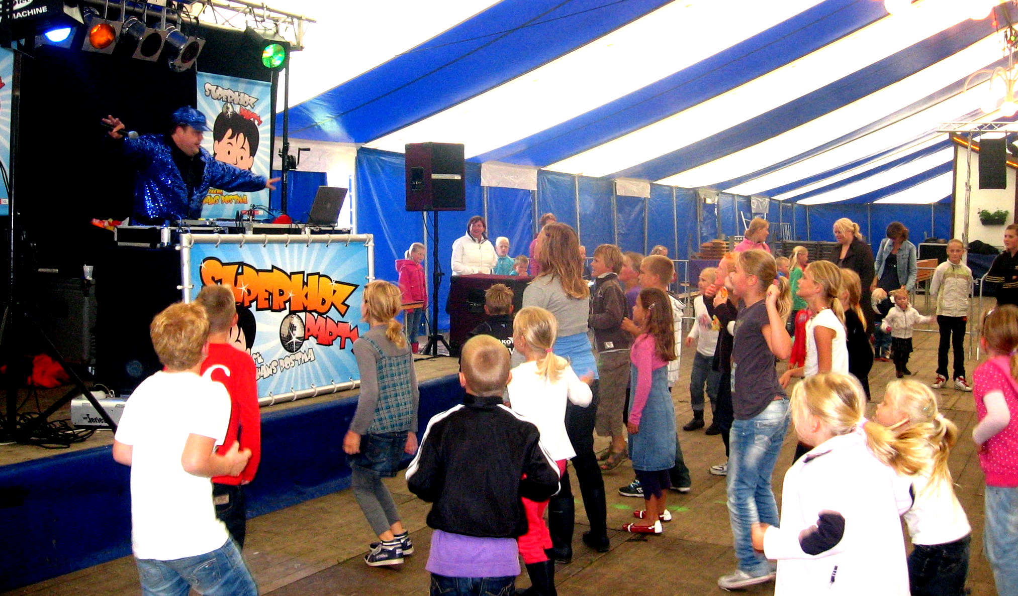 Het begon allemaal met één kindershow in Rinsumageest naast mijn avontuur in Quatrebras. En dat werd de officiele starte van de SuperKidzParty, de one-man show van Hans Postma, nog vóórdat de Coolkids Party ontstond. Met muziek, spel, interactie en een flinke dosis energie trok Hans jarenlang langs feestweken, dorpsfeesten en evenementen. De SuperKidzParty draaide om plezier maken, samen dansen en kinderen écht betrekken bij het feest. Geen vast script, maar inspelen op het publiek en de sfeer van het moment.